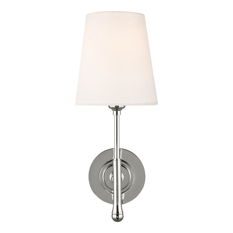 Capri from TOB Thomas O’Brien for Generation Lighting reflects the trending uptown chic style with its upscale, unfussy sensibility. This single-light wall sconce features a white linen fabric shade and a Polished Nickel finish for more of a contemporary look. The column and stem detail epitomizes Thomas’ vintage elegance.