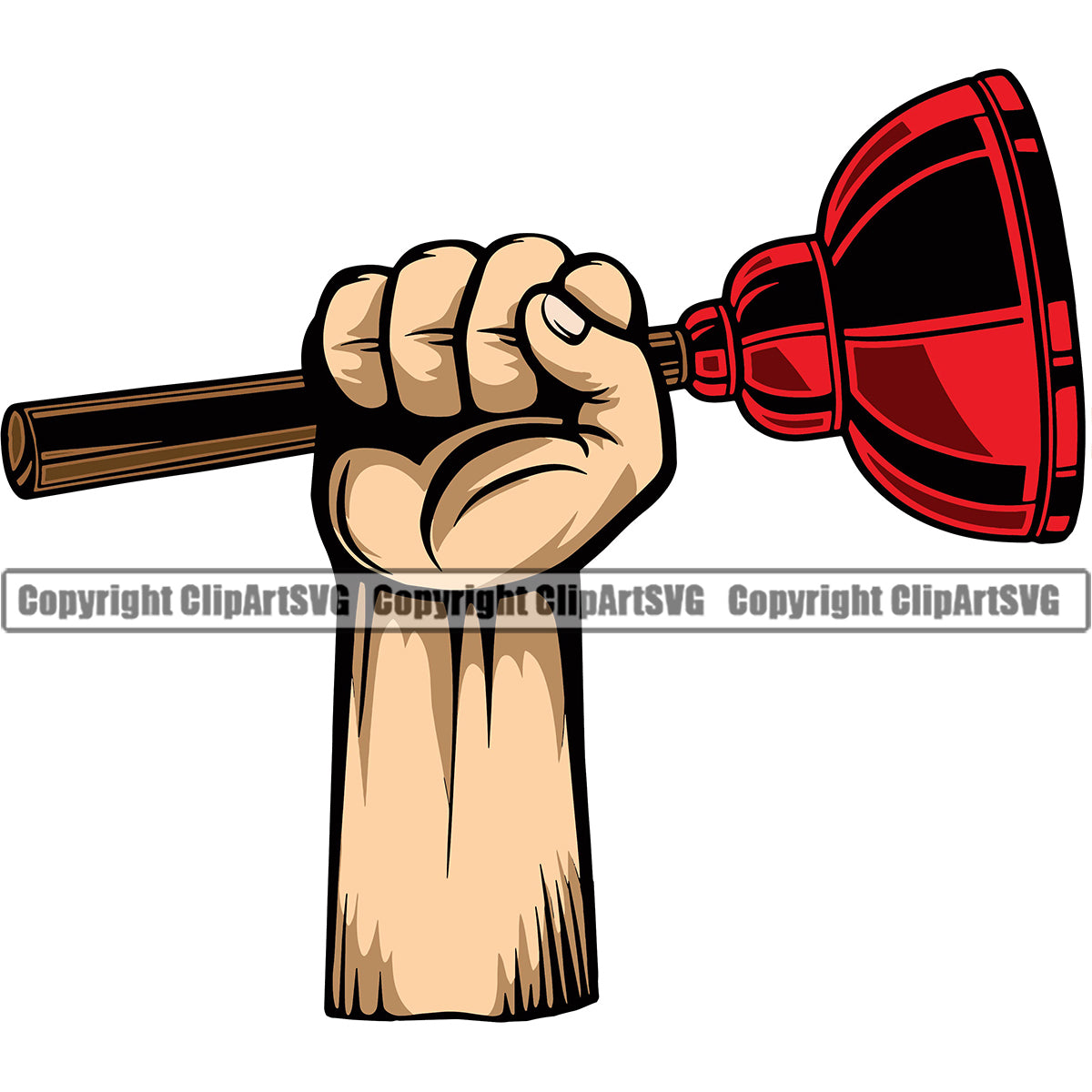 Plumber Pipe Repair Service Hand Holding Plunger Plumbing Work Kitchen Color Design Element Professional Tool Repairman Handyman Equipment Drain House Water Maintenance Bathroom Clipart SVG Wholesale Pice For Sale