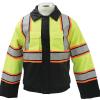 The tri color reflective jacket and vest combo is made from water proof nylon outer shell, making it very useful for protecting you from inclement weather. Its inner lining is made from 100% polyester fiber to provide you with comfort and warmth. Its bright high visibility colors will ensure you can be seen easily in any heavy rain or fog.