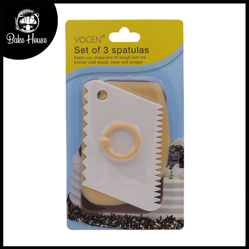 The VOCEN Set of Three Scrapers offers a versatile trio of scrapers designed to handle a wide range of kitchen tasks, from smoothing cake surfaces to scraping dough and batter. Each scraper in the set features a distinct edge, making them perfect for shaping, cutting, and evenly spreading materials. Made from high-quality, durable plastic, these scrapers are lightweight, easy to clean, and ideal for both professional bakers and home cooks alike.
